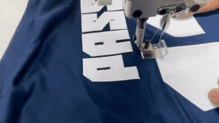 Combines fabric patches with embroidery stitches, allowing for large designs without fully covering the surface in thread. Used for jersey numbers, patches, and decorative pieces on bags or apparel.