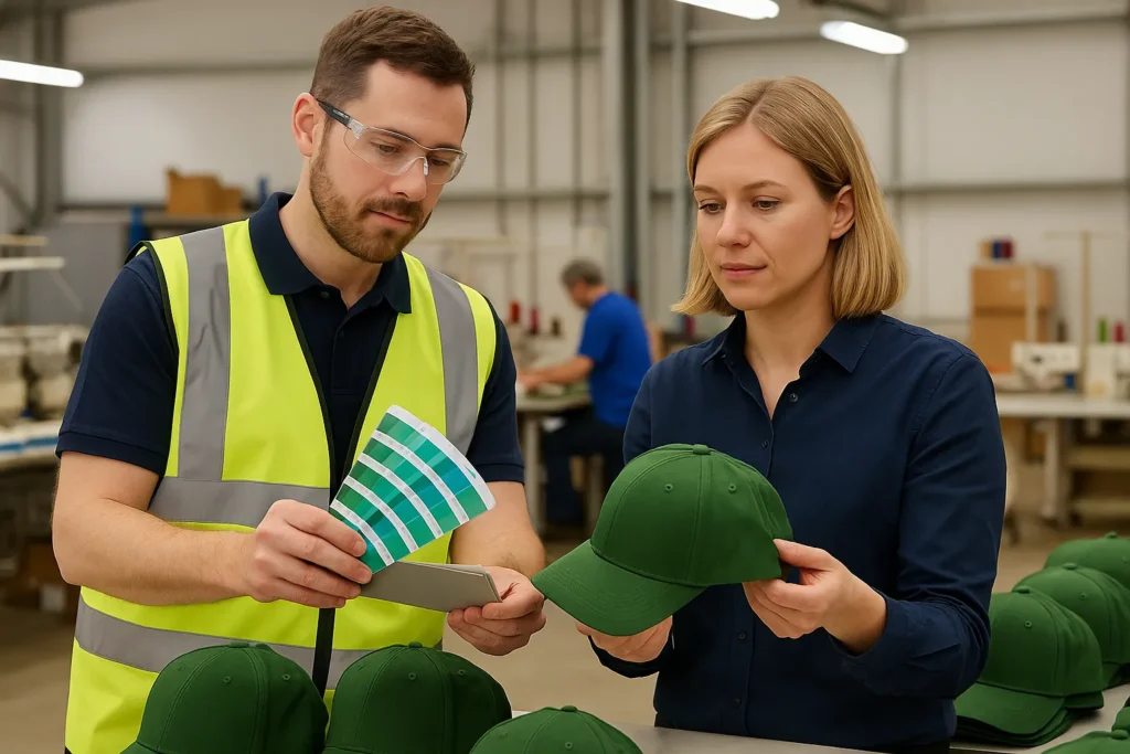A long-term client from Germany ordered 20,000 custom promotional caps for a large retail campaign. Color consistency was critical, as the caps had to match the brand’s official Pantone shade.
